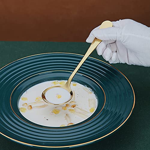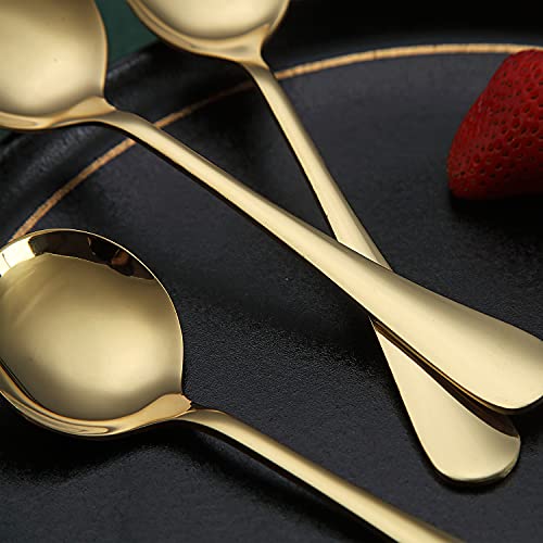 Berglander 6 pezzi Cucchiai da zuppa oro, posate a cucchiaio rotonde in acciaio inossidabile, cucchiaio da minestra classico in oro lucido, set di cucchiai da tavola lavabili in lavastoviglie.