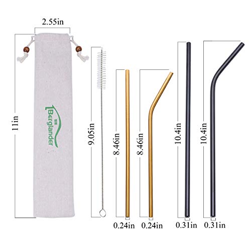 Berglander Riutilizzabile Oro e Nero Cannucce in Acciaio Inossidabile Cannucce Curve e Dritte Metallo Cannuccia per Cocktail, Succhi e Bevande Calde, 18 Pezzi