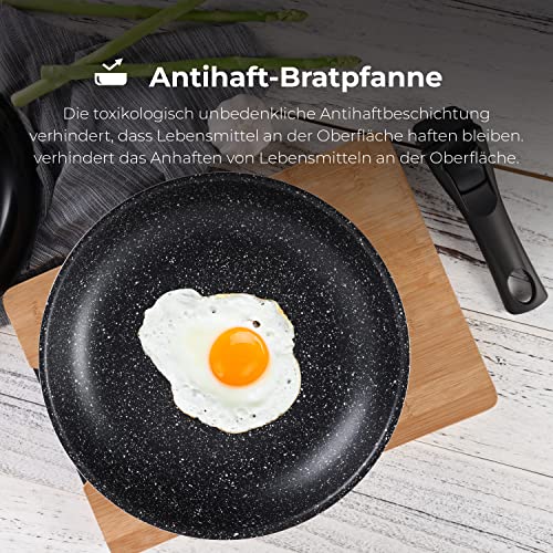 BERGNER Click & Cook Black Edition | Set di Padelle | 2 Padelle di Alluminio Stampato di 24 e 28 cm | Con Manico Ergonomico Intercambiabile | Utensili da Cucina | Per Ogni Tipo di Piano Cottura