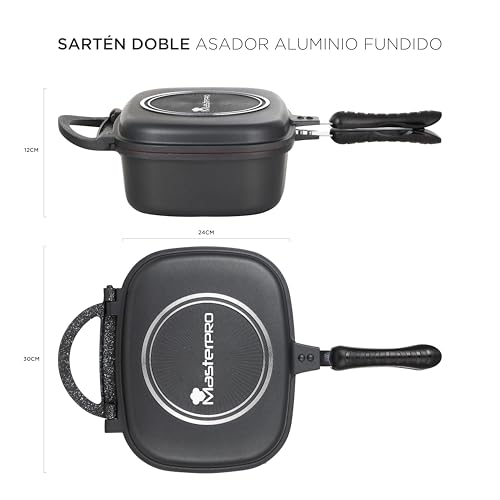 Bergner Double grill padella doppia alta 30x24x12CM in alluminio pressofuso con corpi separabili Masterpro