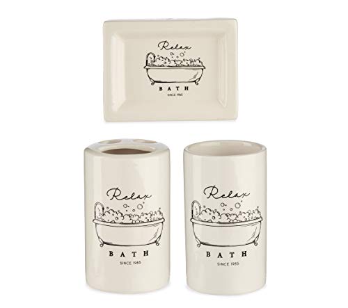 Berilo Set Bagno Accessori. Set Accessori Bagno 4 Pezzi. Portasapone Liquido Bagno + Porta Sapone + Bicchiere + Porta Spazzolino da Denti."