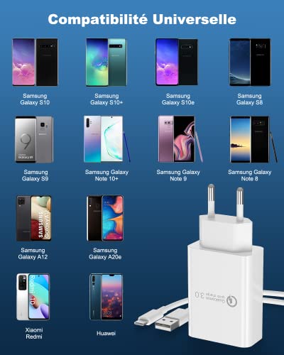 BERLS Caricabatterie Quick Charge 3.0 per Samsung Galaxy S6 / S7 / S8 / S8+ / S9 / S10 Edge / Plus, Note 8 / 7, Nexus 5X / 6P / 9, LG G5 / G6, HTC One A9 / M9 / 10, iPad Pro / Air and More