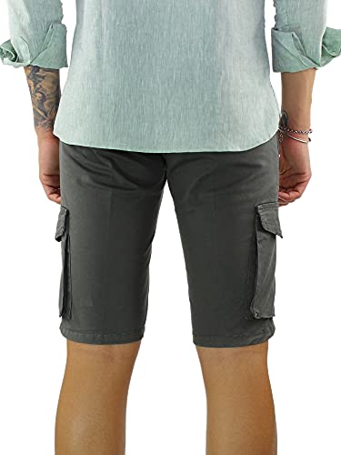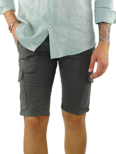Bermuda Uomo Cargo a Pois Made in Italy Pantalone Corto Jeans Tasconi Laterali Casual (44)