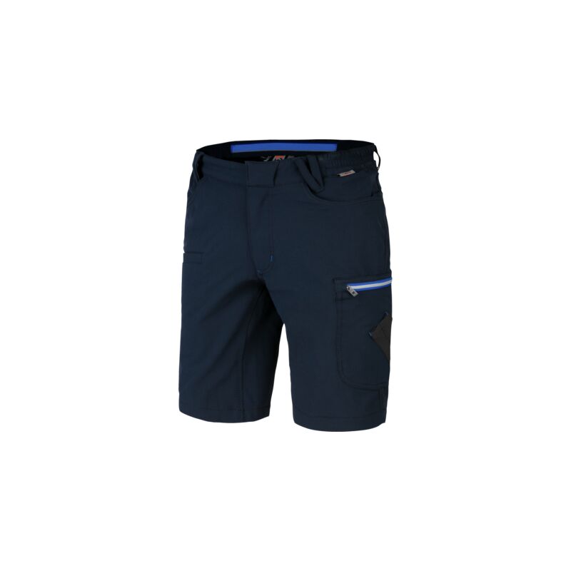 Bermuda Navy Stretch Bermuda da lavoro moderno e leggero per l'estateIl nostro bermuda da lavoro della collezione Stretch Evolution è un capo leggero, il preferito in estate, che offre un piacevole comfort nelle calde giornate di lavoro grazie sia al materiale stretch a 4-way, ma soprattutto alla rivoluzionaria tecnologia tessile che interagisce con la temperatura corporea: se sale la temperatura si attiva la funzione rinfrescante, se si abbassa si deattiva.Il bermuda dal design moderno e sportivo può senza dubbio essere utilizzato anche nel tempo libero. Gli inserti riflettenti colorati in royal sulle tasche e sulle cuciture offrono un highlight all'occhio anche in ambienti scarsamente illuminati.Il materiale idrorepellente è allo stesso tempo resistente all'abrasione e molto confortevole da indossare: C'è tantissimo spazio per gli utensili da lavoro e per gli strumenti più piccoli in ben 7 tasche esterne e inoltre 2 tasche anteriori e 1 tasca per il metro. Clip per badgeholder