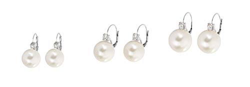 Bernardotto Argento, Orecchino Donna in Argento 925, con Chiusura a Monachella, con Zircone Preciosa e Perla Bianca Antistriscio, Rodiato, Prodotto Artigianale Made In Italy
