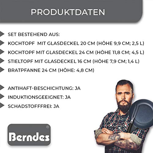 Berndes Balance Induction Enduro Kochtopfset 4-Teilig Batteria 7 Pezzi: Casseruola, Pentolino 16 cm, Padella Fonda 28 cm, Coperchi in Vetro 16+20+24 cm, Alluminio Forgiato, Nero