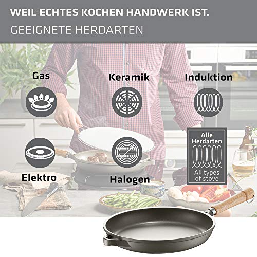 Manico realizzato in frassino della sauerländ: il manico realizzato in legno tipico della zona di origine di berndes (la sauerländ), oltre a garantire una presa sicura e confortevole, conferisce un aspetto classico e tradizionale;
