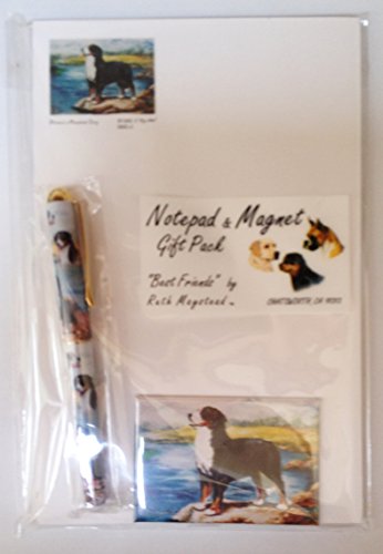 Bernese mountain Dog Gift set by Ruth Maystead "Best Friends." Con una bella penna a sfera e penna sacchetto di velluto, un blocco note e corrispondenza frigorifero.