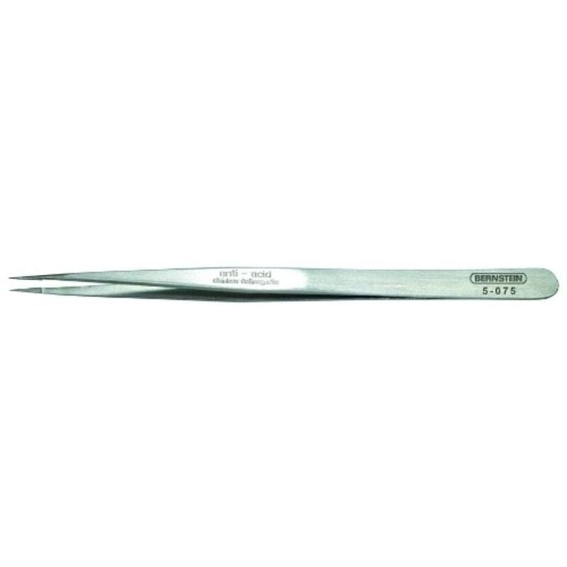 Dettagli tecnici Dimensione del prodotto, lunghezza 140 mm Forma delle punte (pinzette) Molto acuminate Larghezza becchi/ganasce 0.4 mm Materiale Acciaio speciale Peso 13 g Proprietà del materiale antiruggine, levigato opaco Tipo prodotto Pinzetta SMD Caratteristiche Pinzetta SMD, 135 mm, impugnatura ribassata, punta dritta super-affilata, inossidabile, lucidata opaco, antimagnetica, resistente agli acidi. Incluso nella consegna null Requisiti di sistema null