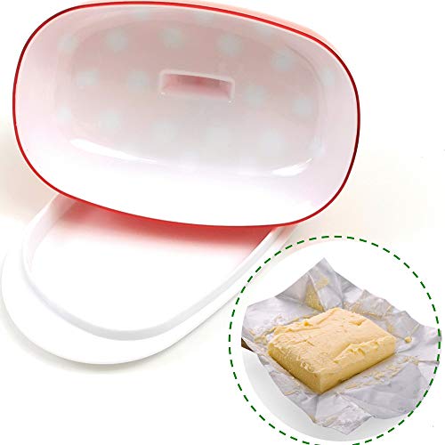 Berossi Burro Piatto di plastica Rosso con Coperchio BPA Libero per la conservazione in Frigorifero Rosso Burro Scatola di plastica di Servizio Rotante Piatto di Latta Stile retrò