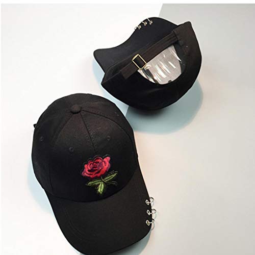 Berretto da Baseball Esterni delle Ragazze Anello di Ferro con Rosa Cappello del Fiore del Cappello del Ricamo Casuale Regolabile papà Cappello Hip Hop per Le Donne