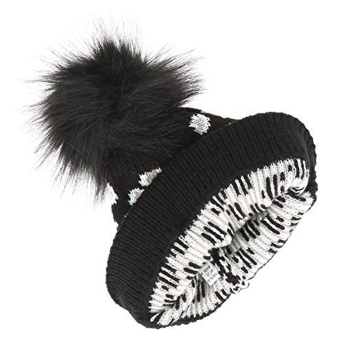 Berretto Donna Leopardato Nero - Berretto Invernale a Maglia Caldo e Denso con Pom Pom Stesso Colore - 100% Acrilico - Capello Tendenza e Originale Modello Animale - Taglia Unica