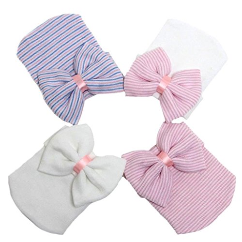 Berretto per neonata e bambina, con fiocco, a righe