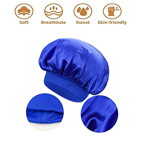 Berretto da Notte Raso, Seta Cuffia per Capelli con Elastico a Banda Larga, Grande Cuffia da Notte, Dormire Cappello per Donne Ragazza Capelli Ricci Cura (Blu)