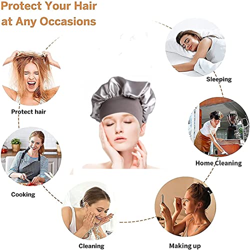 Berretto da Notte Raso, Seta Cuffia per Capelli con Elastico a Banda Larga, Grande Cuffia da Notte, Dormire Cappello Protezione dei Capelli, Donna Cuffia Capelli Ricci Notte Bonnet (Argento)