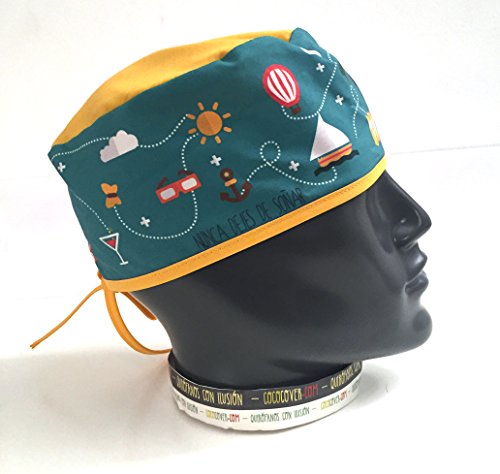 Berretto sala operatoria. Cuffie da sala operatoria. Aereo Terra Blu.Capelli corti