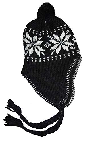 Berretto peruviano Chullo Ch'ullu con pompon unisex da uomo/donna, colori a scelta, nero 2, Taglia unica