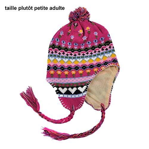 Berretto peruviano foderato interno in pile, taglia unica 56 58 cm, circa caldo Trapper Nuovo Freddo Inverno Uomo Donna Sci Neve Rif:1542A, Rosa, 56/58 cm