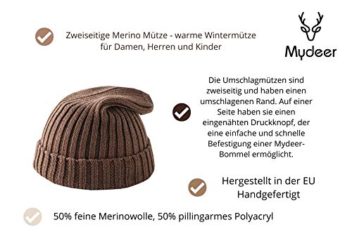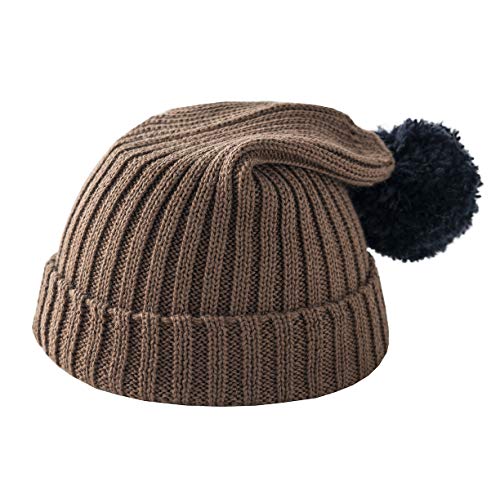 Berretto unisex in lana merino double face, berretto con pompon, berretto con pompon, caldo berretto invernale per donna, uomo e bambino, in diversi colori, marrone / nero, S