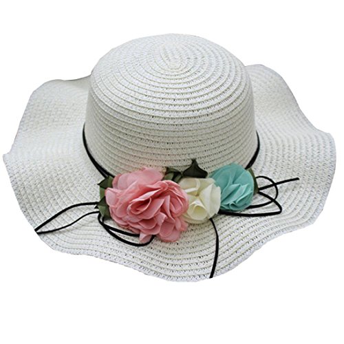 Berretto con Visiera per Bambino e Bambina,BYSTE Neonato Fiore Bordo Ondulato Traspirante Cappello di Paglia, Cappello da Sole Estivo Cappello Panama Tesa Larga Berretto da Spiaggia (Bianca)