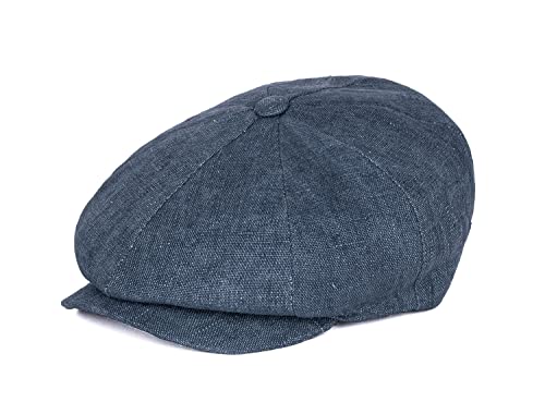 HAT YOU Berretto da uomo con visiera, berretto in lino, Blu scuro, 59-60 cm