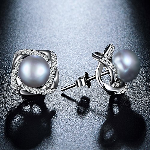 Berry elf, orecchini da donna, orecchini di perle, set di orecchini in argento 925, zirconi 5A, orecchini da donna in argento, gioielli da donna (colore delle perle: grigio)