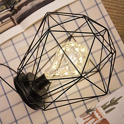 BerryChips Lampada in Metallo Diamanti, Funziona a Batteria, Portatile Lampade da Tavolo, Lampada da Comodino Nordica per Camera da Letto e Soggiorno, Nero, 19.5x19.5x22cm