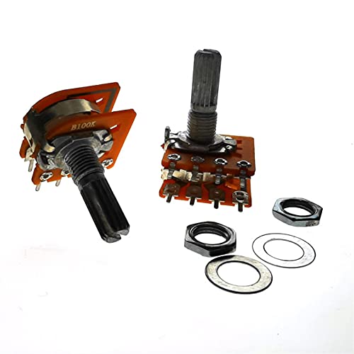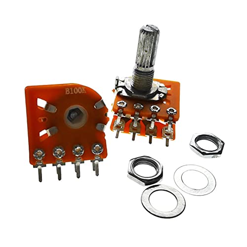 Berrysun Potenziometro 2 Pezzi Nuovo wh148 20mm 5 0kbx2 100kbx2 16 Tipo di Volume Audio potenziometro Doppio 8 Piedi con Rubinetto Centrale B50K 50K 100K (Resistance: 100K Ohm)