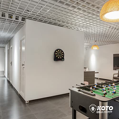Il bersaglio elettronico classico KOTO Exact 590 può essere utilizzato da 8 giocatori diversi contemporaneamente. Possono giocare da soli contro il computer, uno contro l'altro, ma possono anche giocare a giochi diversi in squadre di due, tre o quattro giocatori.