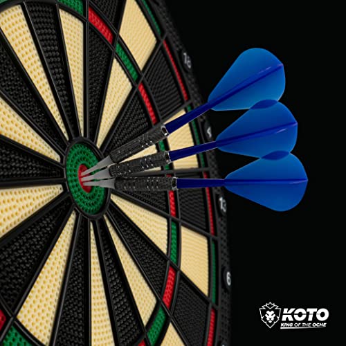 Il bersaglio elettronico KOTO viene fornito con due set di freccette con punta morbida (6 pezzi). Le freccette KOTO con punta morbida sono costituite da punte morbide, canne, aste e alette. Oltre a questi due set completi di freccette con punta morbida, riceverai anche 24 punte extra morbide.