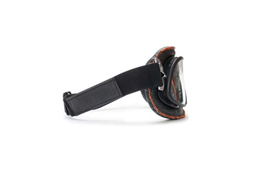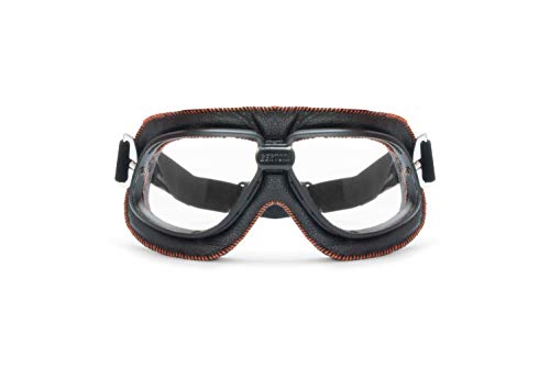 Bertoni Occhiali Moto Vintage Aviatore in Pelle Nera con Cuciture Arancio HD - Lenti Scure - AF196A by Italy - Maschera Moto per Casco Harley e Chopper (Pelle Nera - Lente Trasparente)
