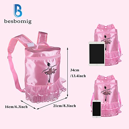 Besbomig Borsa da Danza da Ragazza Rosa Zaino Danza Bag Stile Principessa per Bambini Ballerina Balletto Borsa Sportiva