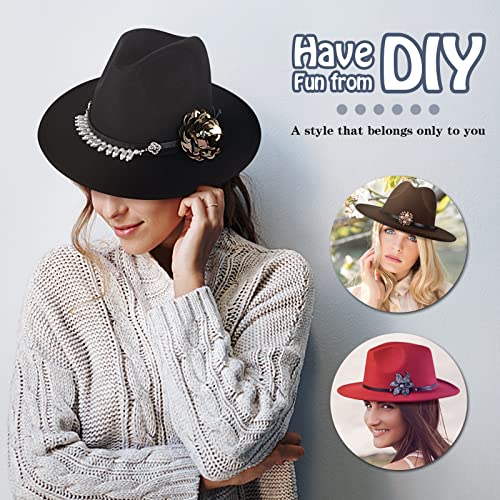 Besbomig Uomo Donna Cappello Fedora Jazz Trilby Berretti Cappelli a Tesa Larga - Cappello in Feltro Autunno Inverno Regolabile 56-58CM