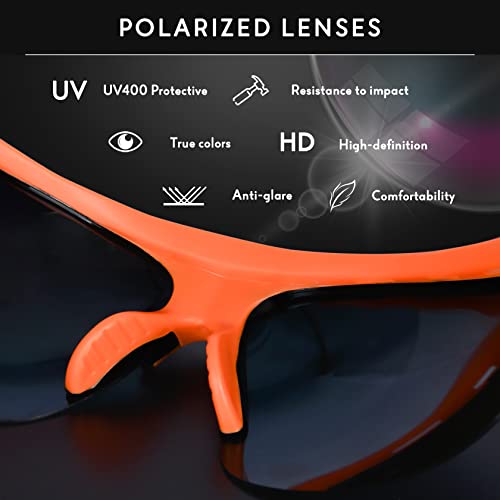 【Rivestimento Polarizzato】 Questi occhiali sportivi di besbomig sono polarizzati, il che può migliorare efficacemente la chiarezza e il contrasto visivi e anche aggiungere stile, allo stesso tempo, tutte le lenti hanno una protezione UV400 al 100%, in modo che la visione nei tuoi occhi sia più chiara e anche l'effetto antiriflesso è migliore.