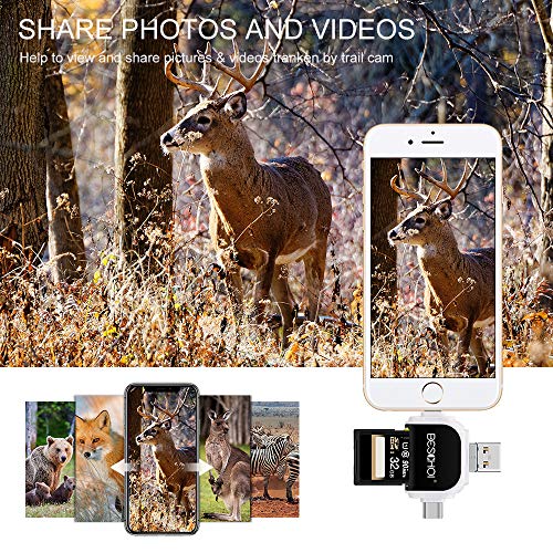 Beschoi Fotocamera di Caccia Lettore di Schede di iPhone & Android, SD & Micro SD Lettore di Schede di Memoria per Visione Wildlife Game Camera Caccia Foto/Video sullo Smartphone