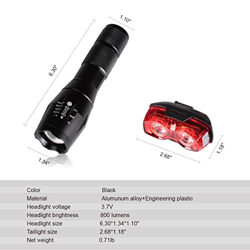2. Fanale anteriore ha 5 modi: alto basso/Fuoco medio/basso fascio/Strobe/SOS, 800 lumen super luminoso. Arriva corredato con i due 3 batterie AAA e una batteria ricaricabile 18650 sono disponibili per metterlo sotto tensione. D' altronde, il fanale posteriore ha 3 modi: alto basso/basso fascio/Strobe.