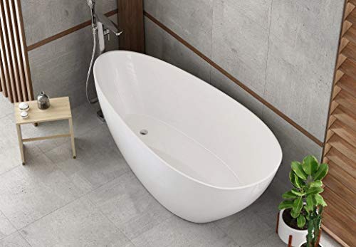 Besco Goya - Vasca da bagno indipendente da 160 x 70 cm, con scarico Click Clack, in conglomerato di marmo (vasca con scarico standard)