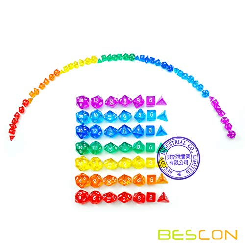 Bescon 49pcs Rainbow Gem Mini Polyhedral Dice Set in Long Tube, Rainbow Dungeons and Dragons RPG Dice 7X7pcs, Mini Gem Dice Set