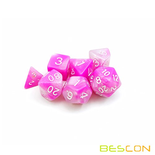 Bescon Mini Gemini Two Tone Polyhedral Rpg Dice Set 10MM, Small Mini Rpg Role Playing Game Dice D4-D20 in Tube, Pink Blossom