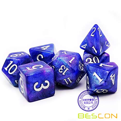 Bescon Starry Night Dice Set Serie, 7pcs Poliedrico RPG Dice Set Twilight, Black Tinbox Imballaggio