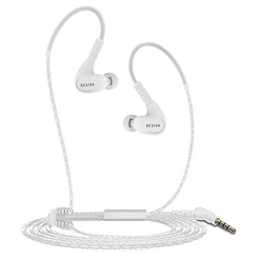 Besign SP02 Sport Auricolari In Ear Stereo Auricolari, In Microfono Incorporato, Memory Wire Cuffie per iPhone Samsung e altri Smartphones con l'audio jack di 3,5mm (Bianco e Nero Pack)