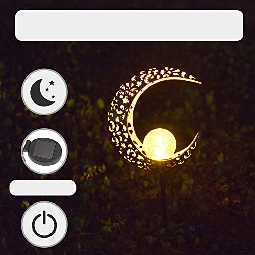 Design a forma di luna: sfera di vetro illuminata su metallo - asta con picchetto, questa luce da giardino all'aperto è progettata con forma di luna di vetro, con una ciotola di luna incavata che rende la vostra casa una fiaba. È ideale per decorare vialetti, terrazze, giardini, marciapiedi, prati, paesaggi, ecc.