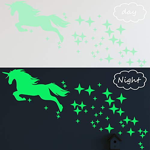 BESLIME Adesivi luminosi, adesivi luminescenti camera dei bambini, stelle luminose autoadesive, Adesivi murali pentagramma e unicorno per camerette
