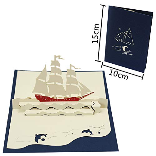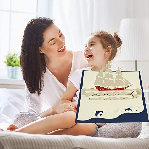 Beslime, biglietto di auguri di compleanno, regalo per parenti, amici e amanti speciali, biglietto di auguri pop-up 3D con bel taglio di carta, busta inclusa (barca a vela)