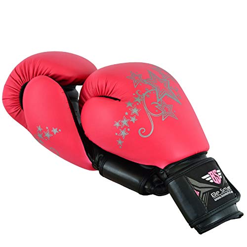 BeSmart Kids guanti da boxe per bambini, 113,4 g, 170,1 g per MMA Youth Authentic Advance guanti in gel utilizzati dai migliori Club MMA, donna Bambino Uomo, Black & Pink With Silver Stars