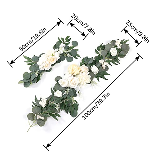 Set di fiori per arco nuziale: un set di 2, tra cui 1 grande fiore ad arco+1 piccolo fiore ad arco+4 cravatte+4 clip. La corona contiene foglie di eucalipto, foglie di salice, rose, ortensie e altri fiori di riempimento. S: 50 x 20 cm, L: 100 x 25 cm, due fiori ad arco sono belli e vivaci.