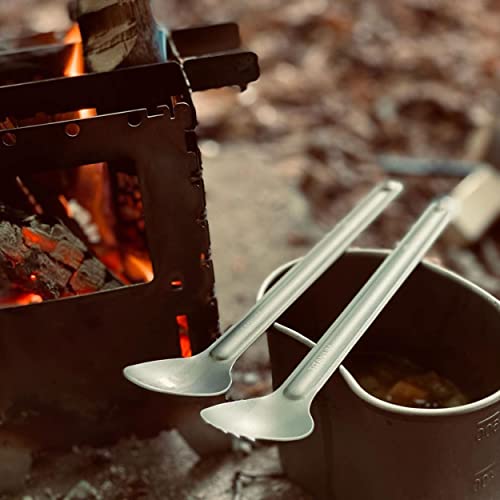 Bestargot Set di posate da campeggio in titanio, extra lunghe, cucchiaio, set di posate da campeggio ultraleggere, forchetta in titanio, posate da viaggio per viaggi in zaino