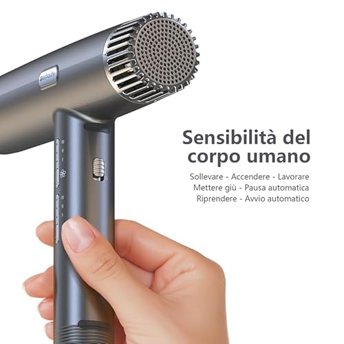 Bestauty Asciugacapelli Intelligente, 2000W Phon Professionale con Motore Brushless 110000 GIRI/MIN, Asciugacapelli Ionico con Diffusore e 2 Ugelli, Adatto per Parrucchieri PRO o Uso Domestico