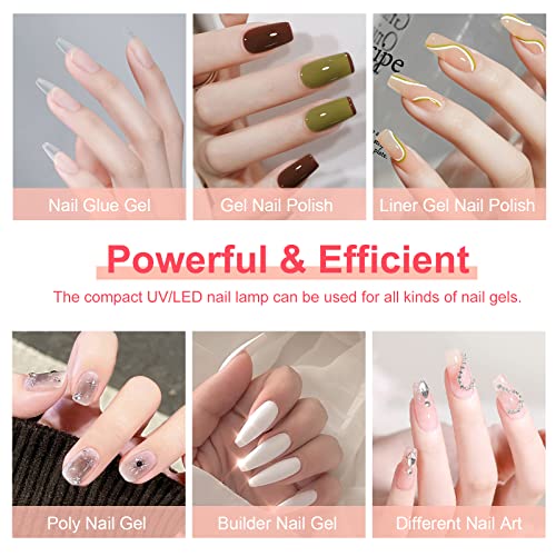 ✨ 【Asciugatura rapida】 Il mini essiccatore per unghie UV/LED adotta la modalità a doppia sorgente luminosa, 3 perline luminose, adatte per colla UV, colla di estensione, colla per unghie a LED. Aiuta lo smalto ad asciugare, curare e modellare rapidamente le unghie.