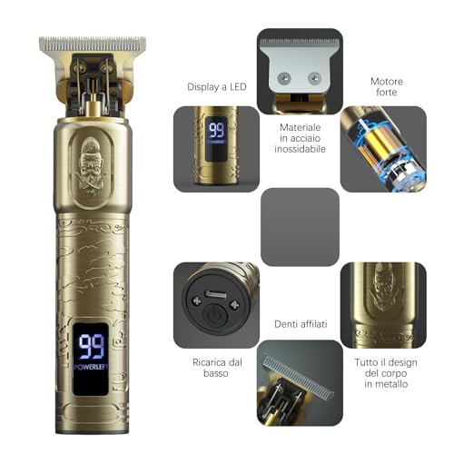 ✂【Tagliacapelli a lama a T】Il Bestauty tagliacapelli uomo professionale è dotato di lame in acciaio di precisione, che permettono di tagliare rapidamente e in modo sicuro senza strappare i capelli o la barba. Il tagliacapelli a lama a T consente di tagliare facilmente i capelli, la barba, le basette e le zone intorno alle orecchie. Inoltre, durante il taglio è molto silenzioso e non disturba gli altri.